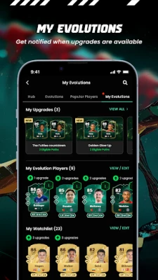 Hold dig et skridt foran med personaliserede notifikationer, der øjeblikkeligt advarer dig om vigtige spilleropdateringer, markedssvingninger, holdanbefalinger og nye udfordringer til trupbygning (SBC'er). FUTBIN giver dig dybdegående løsninger og detaljer til alle SBC'er, suppleret med en intelligent Squad Builder, der foreslår spillere baseret på kemi og links for at optimere dit hold. Udforsk spillernes potentiale med Evolution Hub, hvor du kan planlægge og administrere dine My Evolutions og opdage populære udviklingsveje. Den indbyggede skatteberegner sikrer, at du altid kender den præcise værdi af dine handler.