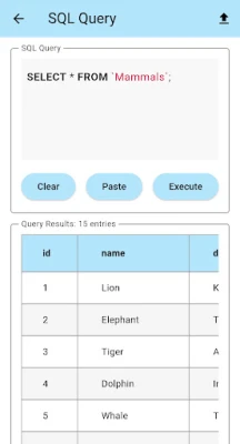 Med "My Database" er indtastning og redigering af data en leg. Tilføj rækker og rediger felter i både lokale og fjernplacerede tabeller, og berig dine poster med flere billeder fra galleriet eller kameraet – komplet med EXIF-rotation, komprimering og en billedfremviser i fuld skærm med zoom og swipe. Find præcis det, du søger, med appens avancerede søge- og filtreringsværktøjer, der understøtter både simple og komplekse operatører samt fuldtekstsøgning. Dine resultater kan sorteres, pagineres og eksporteres som CSV. Udnyt det integrerede SQL-forespørgselsværktøj til at udføre tilpassede kommandoer med syntaksfremhævelse for SQLite og MySQL, og del eller importer dine data ubesværet via ZIP-arkiver eller CSV/SQL-formater med baggrundsbehandling, der viser fremskridt.