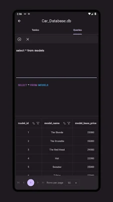 SQLite Viewer gør det nemt at læse SQLite-databaser med .db-udvidelsen. Se tabeller, vælg specifikke kolonner og udfør SQL-forespørgsler direkte på databasen. Appen tilbyder også grundlæggende syntaksfremhævning for SQL-nøgleord, datatyper, tabeller og kolonner for at forbedre din oplevelse.
